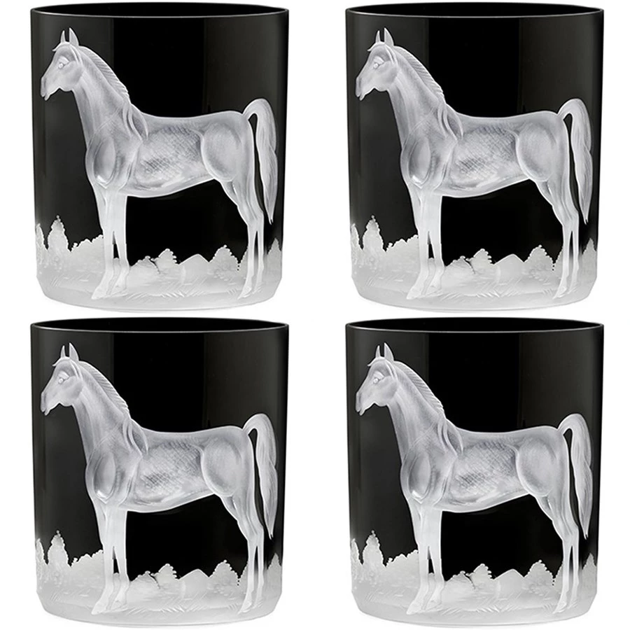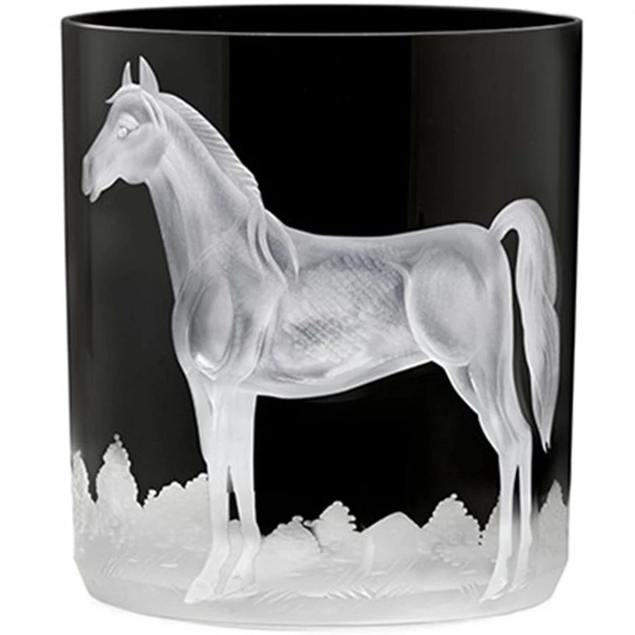 This iconic motif from Artel features a lone thoroughbred horse set in the serene countryside is a quiet study in equestrian elegance. Each horse is exquisitely hand-engraved in rich detail using diamond wheels. A single horseshoe adorns the bottom of each piece. Mouth-blown lead-free crystal from the Czech Republic.