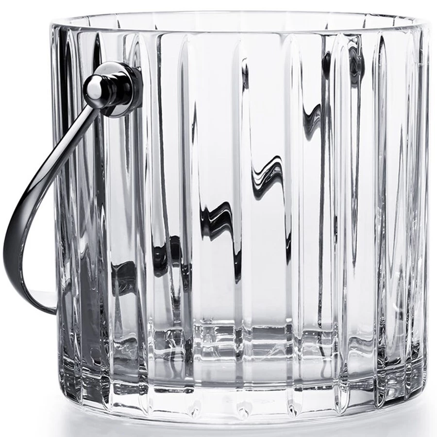 Parallel vertical lines travel cleanly along the silhouette from the lip to the thick base, the streamlined form like a thick Clear crystal column. The stripes are subtly yet precisely etched into the Clear crystal surface of the glass. Not only do they bring a textural quality, but they also create a depth of form that is visually resplendent—all the more so when the bucket is full of cold, glistening ice. Made in France.