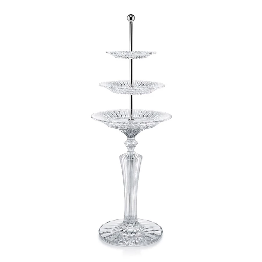 It has a chromed metallic hook system that let the users insert the stem in the marble. It permits the steadiness of pastries stand on his leg. There are 3 crystal clear tiers on the stem. The crystal legs give the Pastries Stand a new luxury touch. It becomes a new outstanding home accessory. It also lets the users elevate their Pastries.