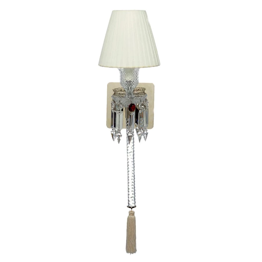 The combination of crystal and metal adds a touch of modernity. Designed by Arik Levy, the Torch wall lamp topped by a lampshade with pleated taffetas was inspired by the emblematic Zénith chandelier, which it partly reinvents. Sold Individually. Particularly effective as a pair.Â