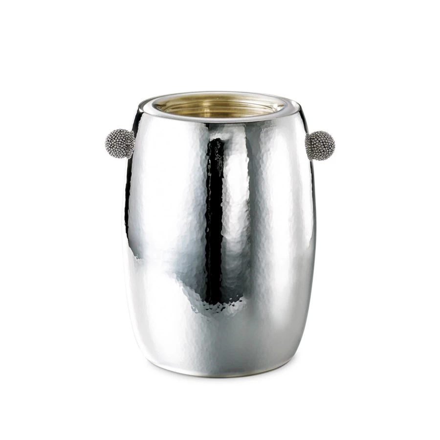 Hand-made of sterling silver, this wine bottle holder is adorned with the caviar bead motif on the handles. Handmade in Italy.