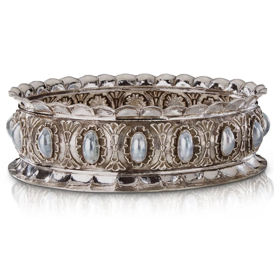 Handcrafted by the finest Buccellati silversmiths, the Fesonata Centerpiece is made of 2,196g of silver, 751 carats. The sides are studded with nacre pearls for a charming finish. Handmade in Italy.