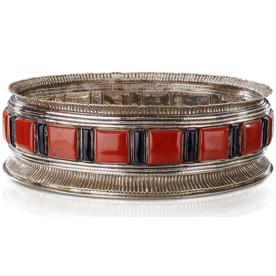 Handcrafted by the finest Buccellati artisans in Milan, this centerpiece contains an astounding 2,790g of silver – 3,614 carats total. The bowl features gorgeous handpicked red jasper squares, carefully separated by lapis lazuli. Handmade in Italy.