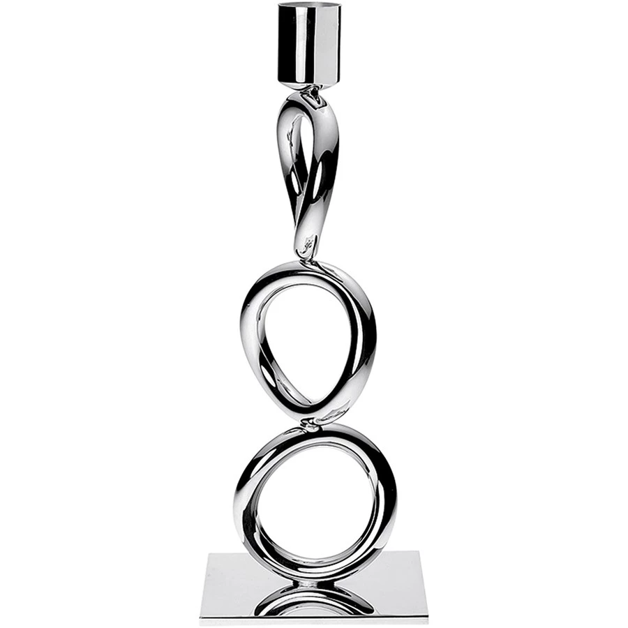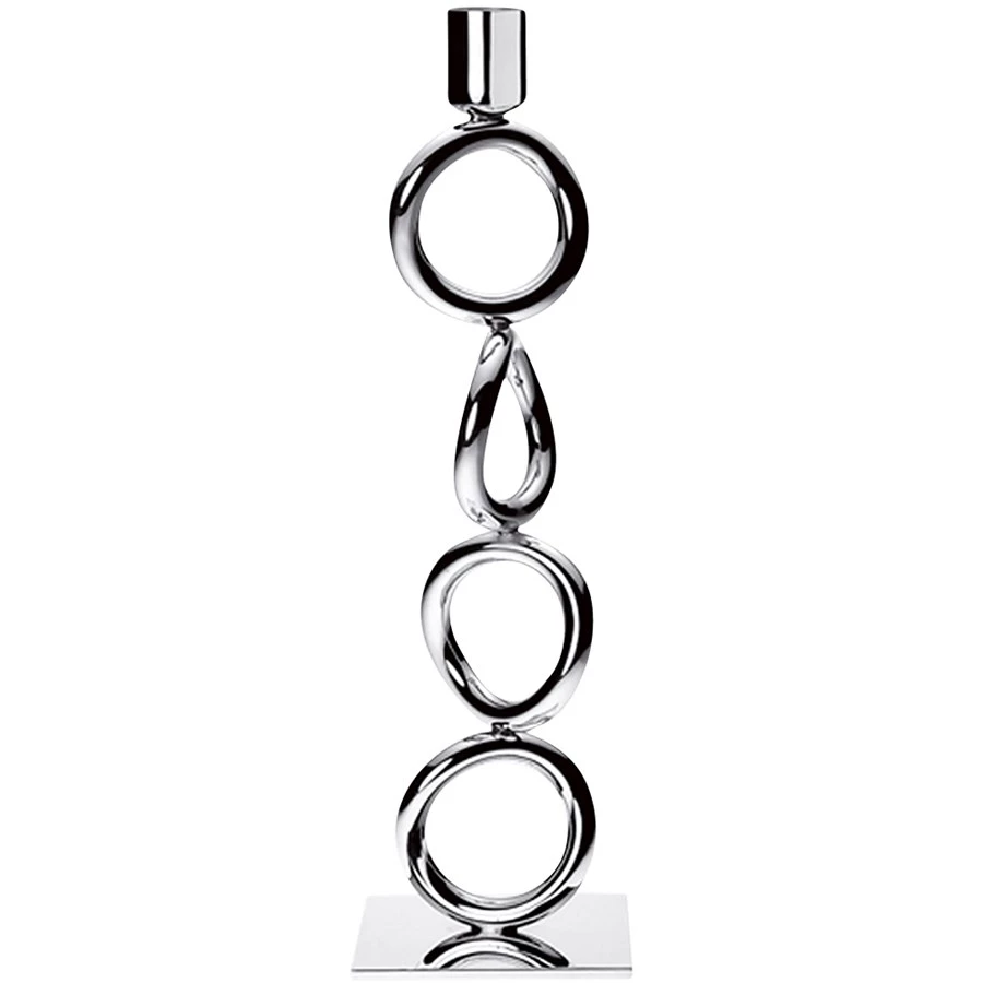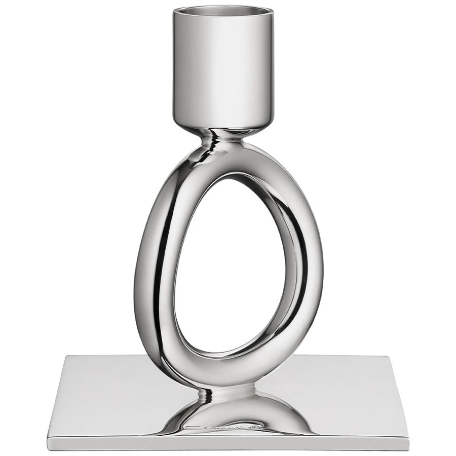Candlesticks feature the emblematic Vertigo rings, whose sensual and subtly asymmetric design is found on every piece in the collection. Each candlestick holds a single taper candle. Handmade in France by Christofle, a pioneer in plating with the highest quality silver at the forefront of decorative arts since 1830.