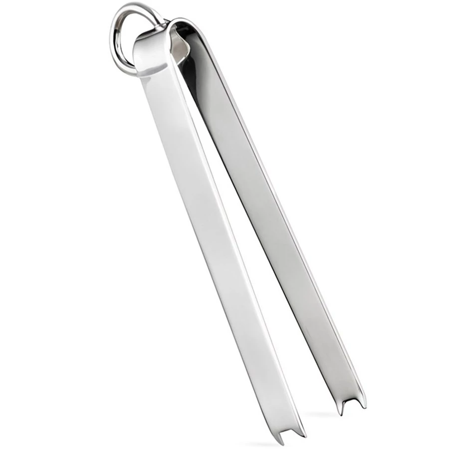 A luxurious pair of ice silverplated ice tongs from esteemed silversmith Christofle of France. Features the emblematic Vertigo ring, whose sensual & subtly asymmetric design is found on every piece.