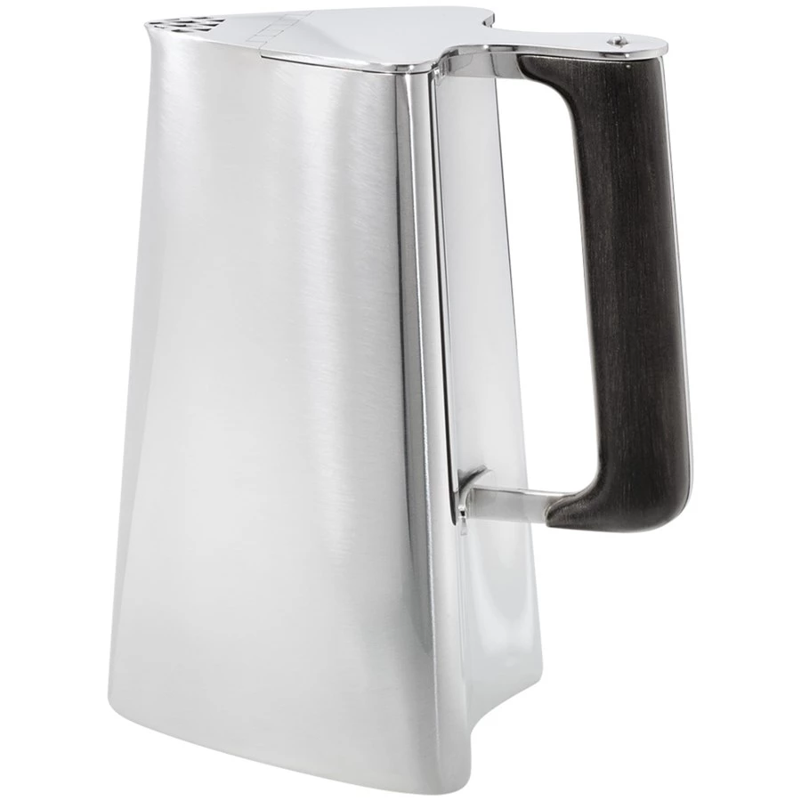 The spare, geometrical silver design of Pitcher 1010 reflects the functionalistic idiom of Bernadotte’s style and pairs handcrafted sterling silver with an ebony handle. Bernadotte replaced Georg Jensen’s typical hammered finish with a clean and smooth surface. Pitcher 1010 is also called the ice-water jug due to the functional sieve that works as a strainer hindering ice cubes or lemon pieces from slipping out. The Pitcher became a design icon in 1980 when Sarah Booth Conroy wrote in The Washington Post, “the Sterling Silver ice-water jug, designed by Bernadotte in 1952, is fit not only for a king but a god.” Handmade in Denmark.