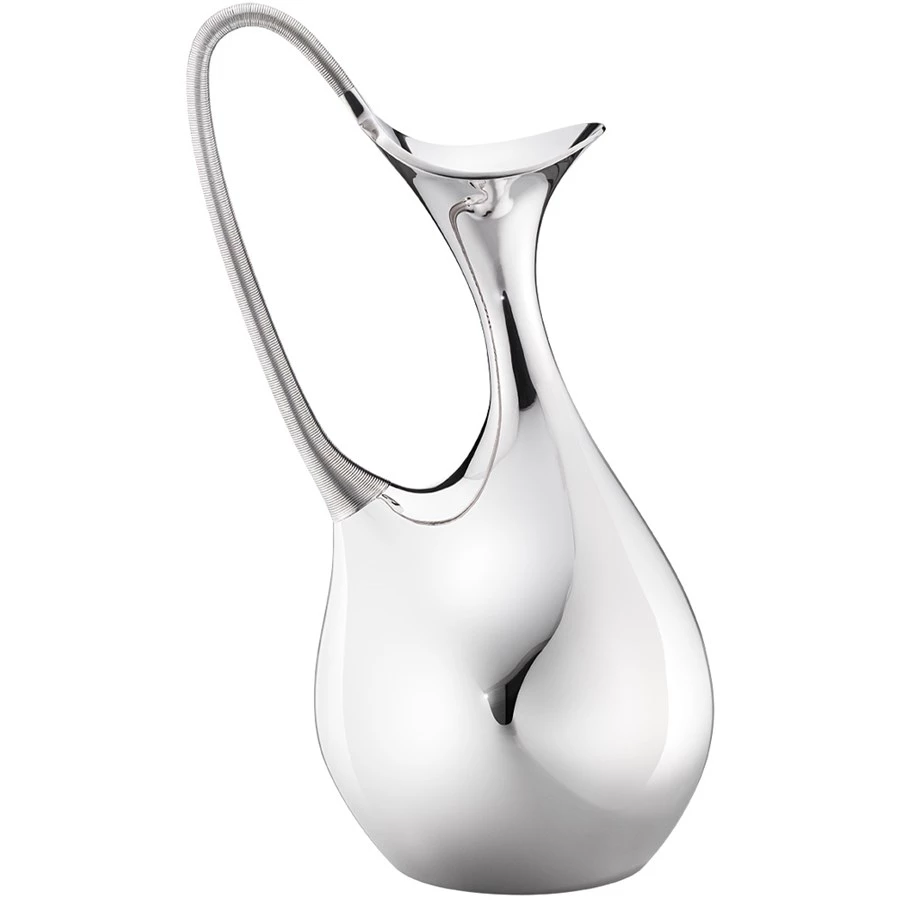 Large sculptural contemporary Koppel pitcher with organic swung lines and a hand-wired handle. Today, Koppel’s precise curves are considered among this century’s best silver works. Handcrafted of sterling silver, the stunning smooth body is accented by sterling silver wire, wound tightly round the handle to create a unique grip and texture. Handmade in Denmark.
