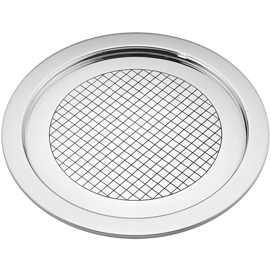 Part of a fabulous cocktail set designed by Sigvard Bernadotte in 1938, this tray had been out of production for more than 50 years until Georg Jensen brought it back in celebration of the cocktail renaissance. Designed during the Art Deco era, this handcrafted sterling silver tray features a beautiful wide rim lip and elegant cross-hatching in the center of the tray. Handmade in Denmark.