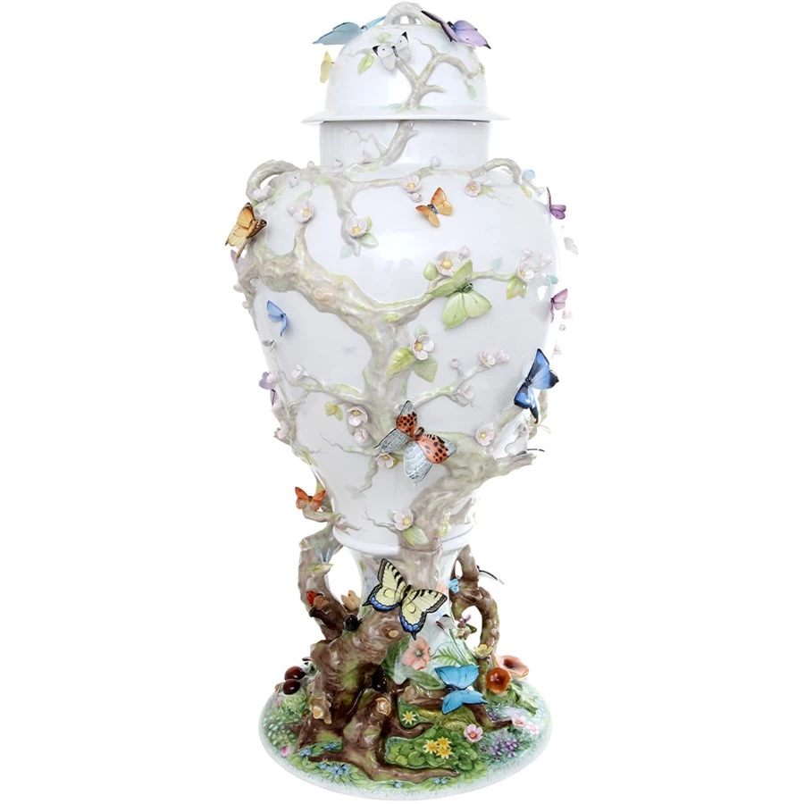 Is the flittering of a butterfly in South America able to trigger a tornado in North America? The Herend masters were also inspired by this question raised by Edward N. Lorenz, introducing the Butterfly Effect vases in 2017. The Herend Porcelain Manufactory salutes the beauties of nature, the butterflies and their flittering, which sometimes moves the world, with a special edition bravura ornamental vase of incredible size and design. The butterflies almost come alive on the mainly snow-white body of the vase, accented with over 100 flowers and twisting branches. The nature-filled stand adds a harmonious component, literally grounding the vase Handmade and handpainted porcelain from Hungary.
