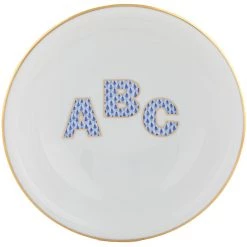 A beautiful keepsake and the perfect first plate for any new addition to the family. Each porcelain plate is decorated with ABC in the iconic Herend fish net pattern, either in blue or pink. Handmade and handpainted porcelain from Hungary, with 24K gold accents.