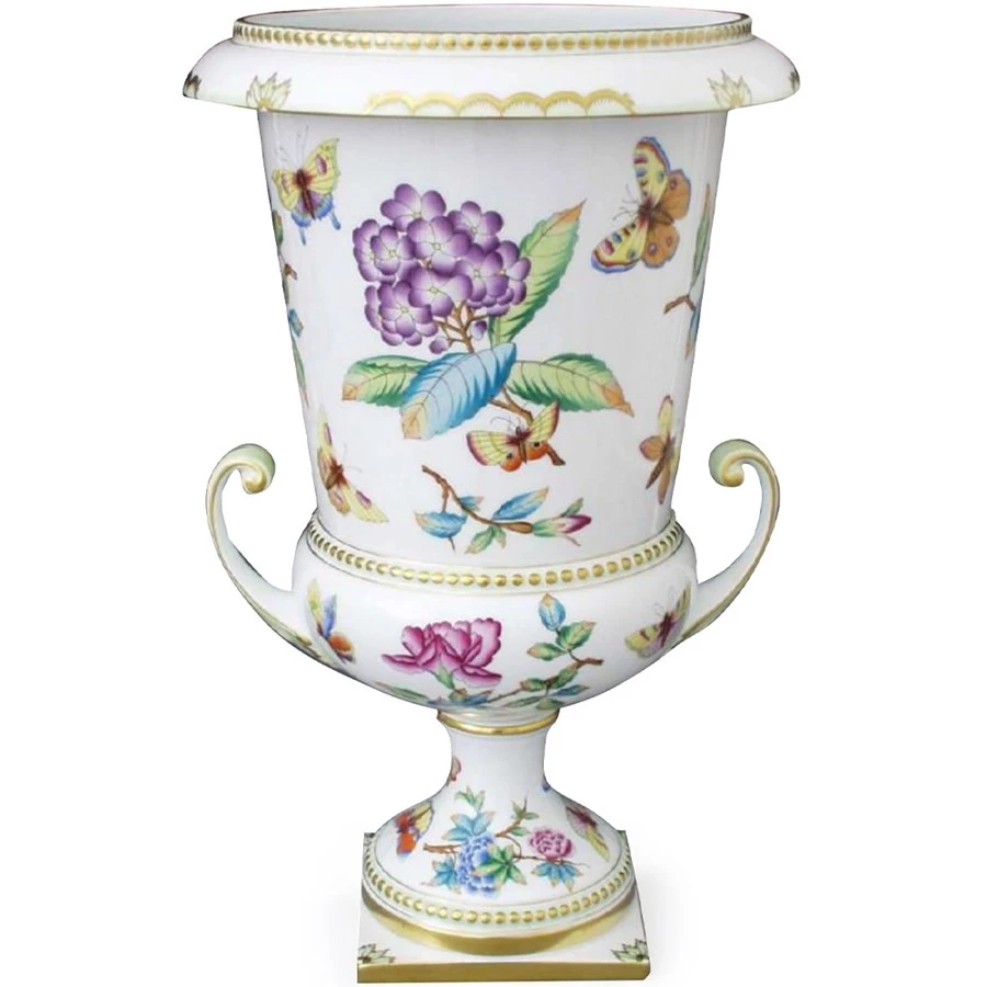 The classic Queen Victoria pattern is transformed from special dinnerware into a beautifully decorated vase. Stunning art in its own right, this vase is perfect on its own or for the most extravagant floral display. Handmade and handpainted porcelain from Hungary with 24k gold accents.