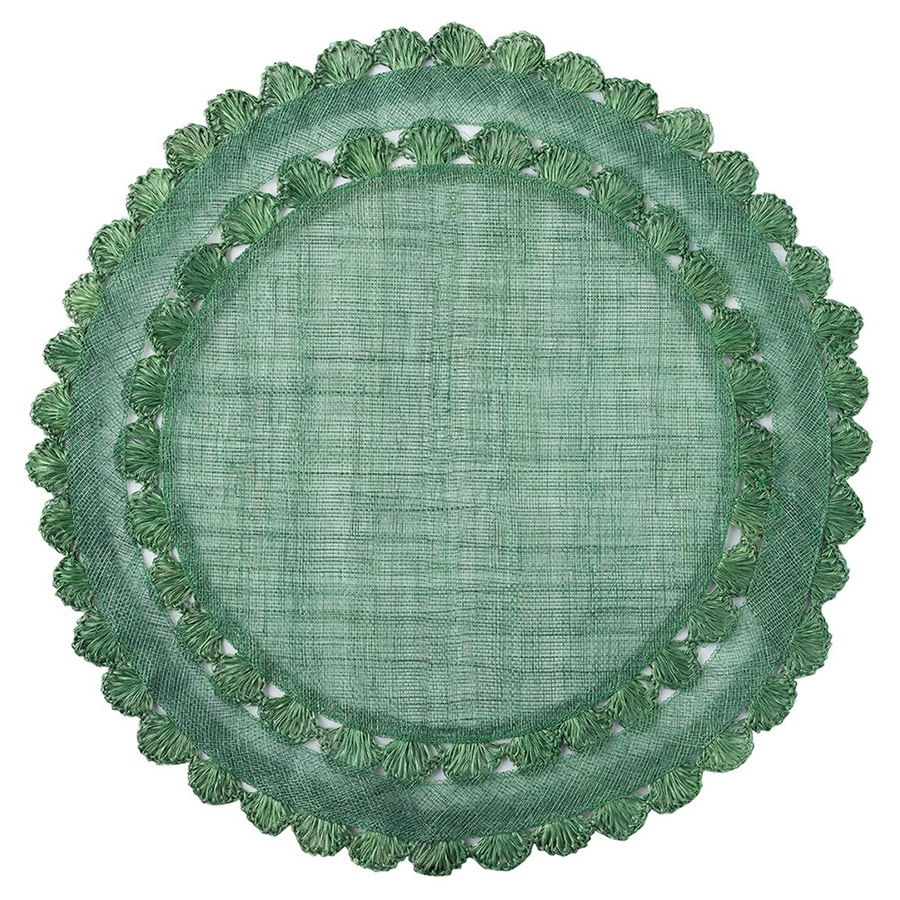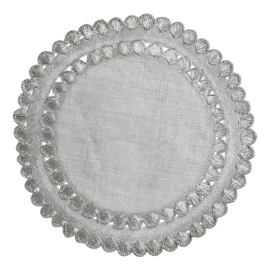 Natural siminay (abaca fibers) are woven into beautiful placemats, embellished with two layers of ruffled trim. The Art Deco inspired effect lends itself to creating table settings that are both relaxed and elegant.