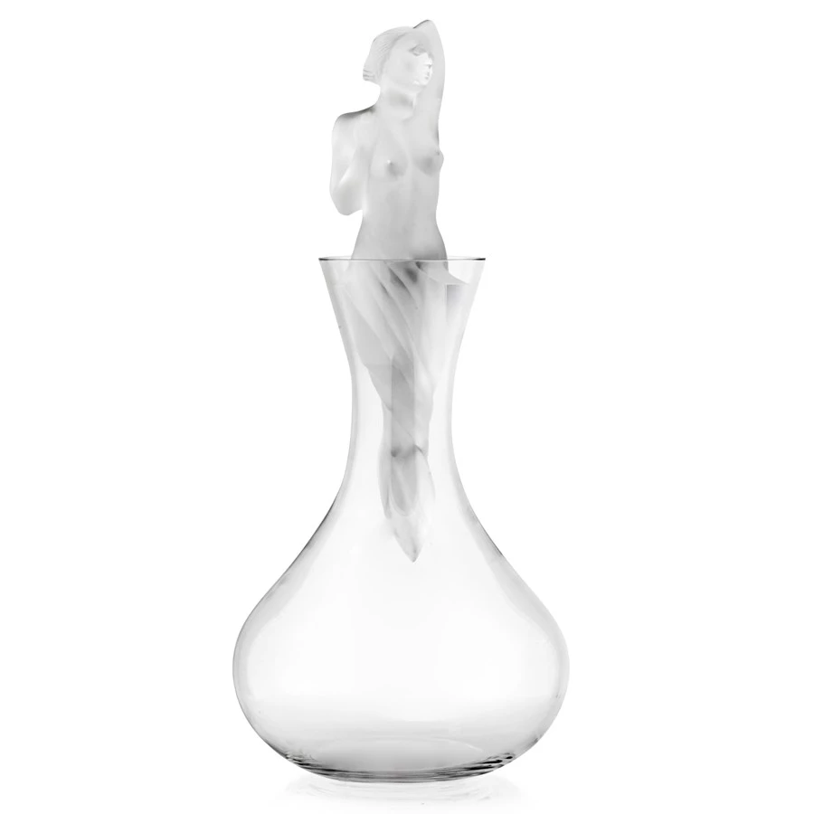 Designed to highlight the flavors of the finest spirits, the Aphrodite decanter enriches the existing collection of decanters to satisfy the desires of connoisseurs and discerning collectors. Enhanced by the glare of satin-finished crystal, the sensual curves of Aphrodite will be guardians of the most exquisite Grands Crus. Her splendor, her disrupting sensuality, her pose, and her elusiveness, illustrate how the Lalique glass masters metamorphose crystal into unique creations, filled with grace and sensuality. Handcrafted from the finest crystal in France.