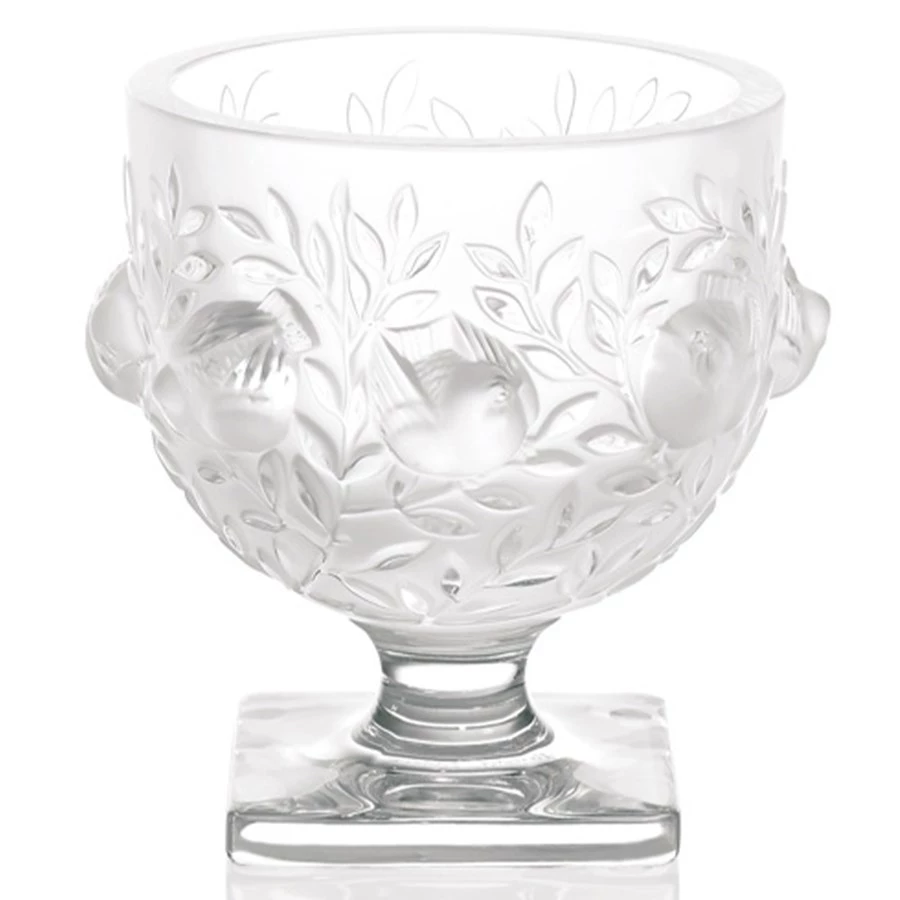 Created in 1961, by Marc Lalique, this vase pays tribute to two of the themes dearest to René Lalique: the Fauna and Flora. Nestled among foliage, sparrows carved in relief adorn this satin finish clear crystal. This vase takes us to a dreamlike state of nature, answering a need for authenticity and wellbeing. Handcrafted in France.