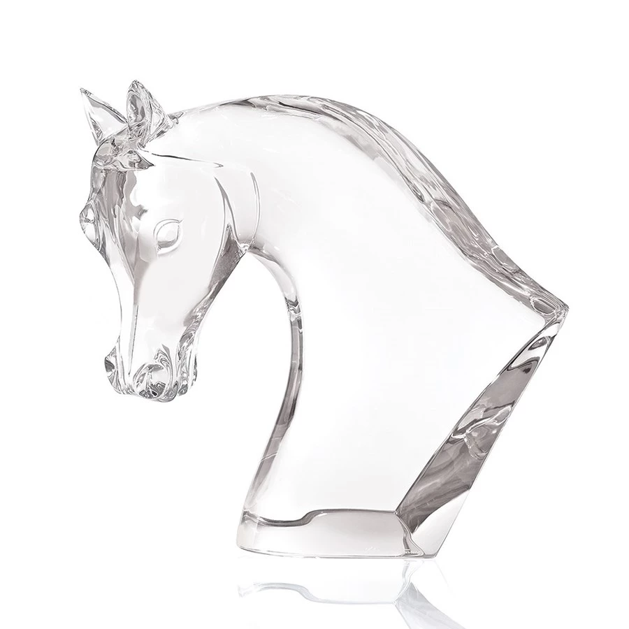 Originally designed by Marc Lalique in 1953, the majestic Horse’s Head sculpture demonstrates the exceptional know-how of the master craftsman. This outstanding figure is made of 54 pounds of pure, sparkling crystal. To obtain its spectacular and contemporary shine, Lalique glass master workers, as true sculptors, carve the piece by hand during more than 3 days and then polish it carefully for many hours. The beauty of the artist’s gesture is part of his quest for excellence. Handcrafted in France.