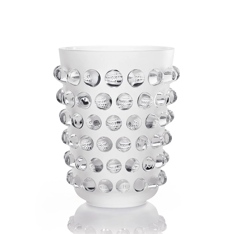 The kaleidoscopic effect of the Mossi Vase is both a stroke of creative genius and a feat of technical mastery. René Lalique designed this flagship piece in 1933. His original choice of material was plain glass, which the company has transformed into the vibrant intensity of crystal. A genuine interior design accessory of modernity, the Mossi plays on the contrast between the brilliance of its cabochons and the frosting of its base. It has been recently reinterpreted in this extra large size in deep opaque black crystal. Handcrafted in France.