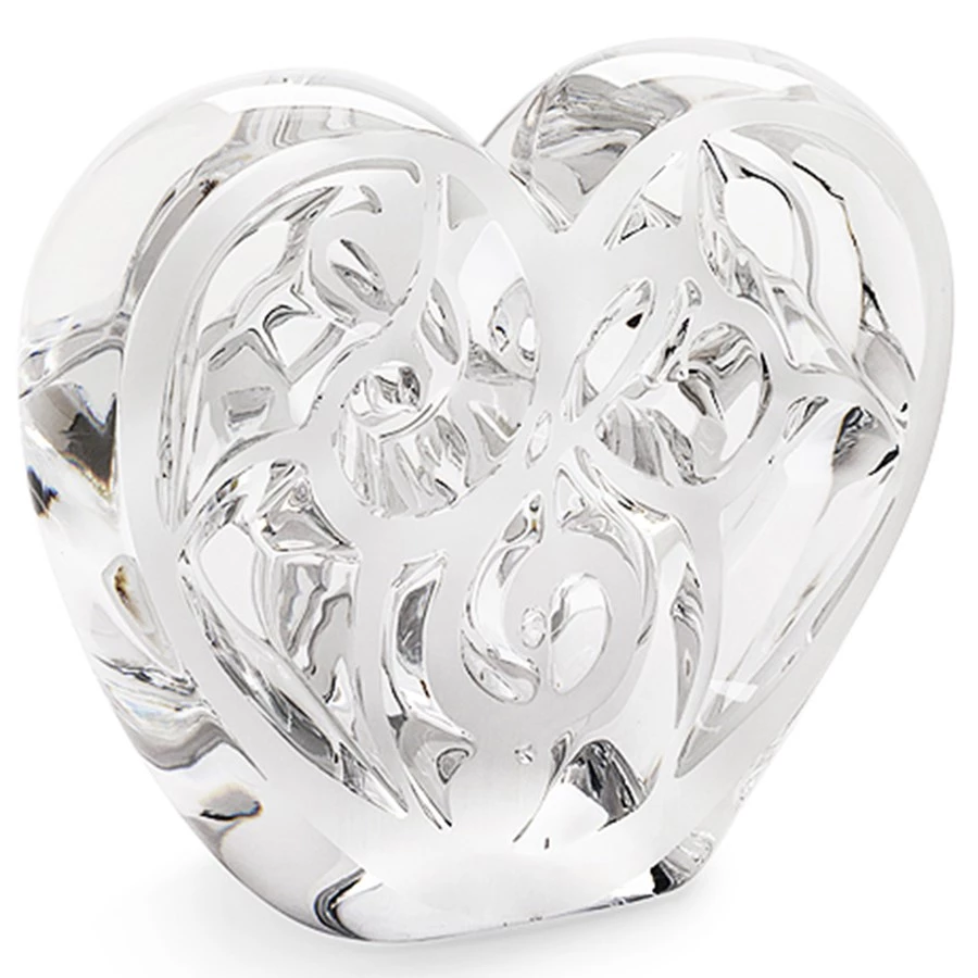 Capturing the magic of music in the shape of the heart, Music is Love is iconic Lalique craftsmanship design for the modern world. A collaboration between Elton John and Lalique, 10% of the sales of each Music is Love piece will be donated by Lalique to the Elton John Aids Foundation. Delivered with a certificate of authenticity mentioning its number, the mouth-blown crystal is expertly carved and polished to the famous satin finish. Handcrafted in France. Limited edition of 999.