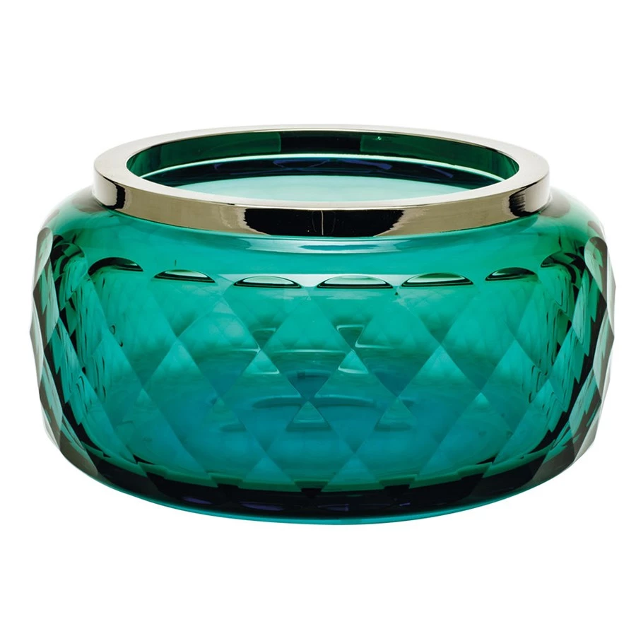 Named for Taiwan’s renowned Chai Te bakery, Moser was inspired by their famous pineapple cake dessert. Designed by Lukáš Jabůrek, each piece is handcrafted with an underlay of aquamarine and green paired with criss-crossed pineapple cuts into the crystal, enhanced with a platinum band around the opening. Handmade in the Czech Republic of the world’s finest lead-free crystal.
