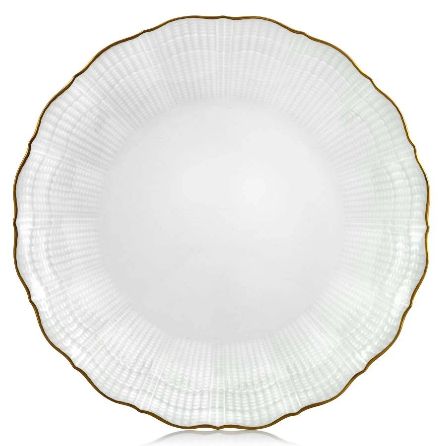 Fabulous pure white porcelain is crafted into an embossed and scalloped design reminiscent of the bountiful shelled sealife. Each piece is handpainted with 24k gold rims. Handmade in Portugal.