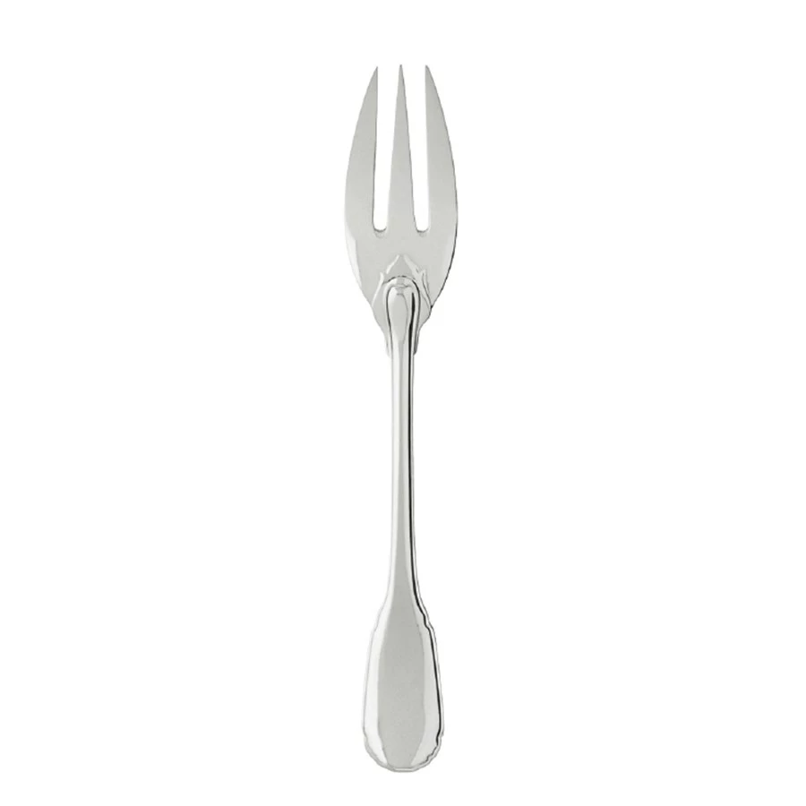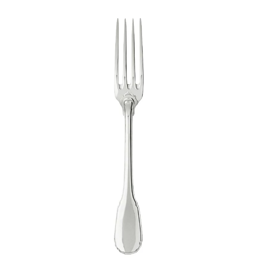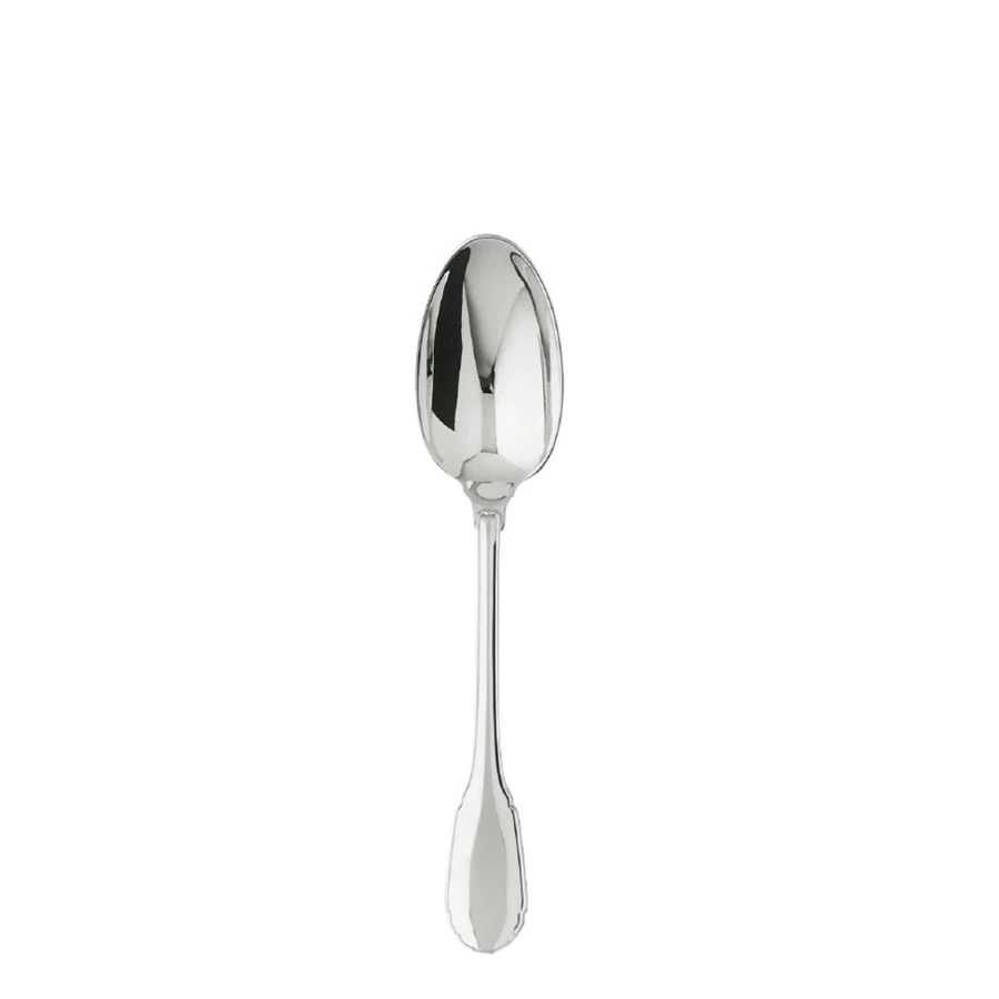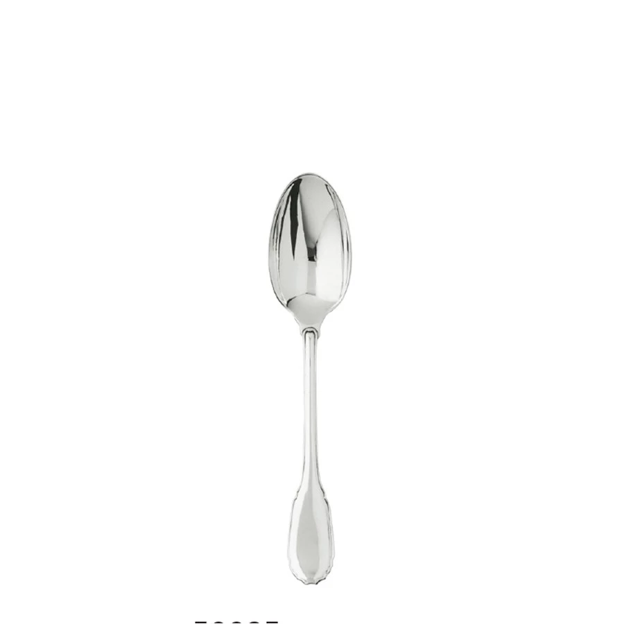 This design in sterling silver, which is part of the Puiforcat collection, is the reprise of an old model from Augsburg, a Bavarian town famed for its silverware. Behind its apparent simplicity there hide a host of refined details such as the delicate curves of the handles, underlined by a thread, and the elegant flame-shaped button on the back of the fork head and spoon bowl.
