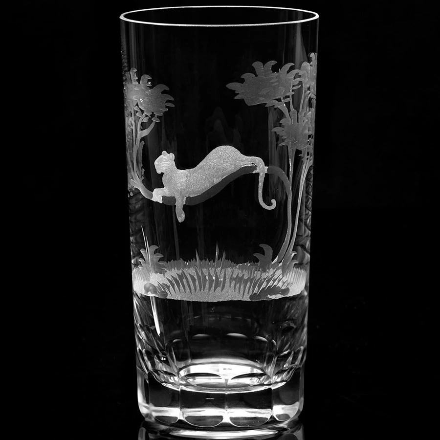 The feral grace of the world’s vanishing wildlife caught forever by European master craftsmen with the Kenyan Wildlife collection. Each Queen Lace Crystal Highball Glass is entirely handblown, handcut and handpolished in Germany. It is then engraved with the rare Copper-Wheel technique developed during the Renaissance. A single engraving takes more than 24 hours to complete.