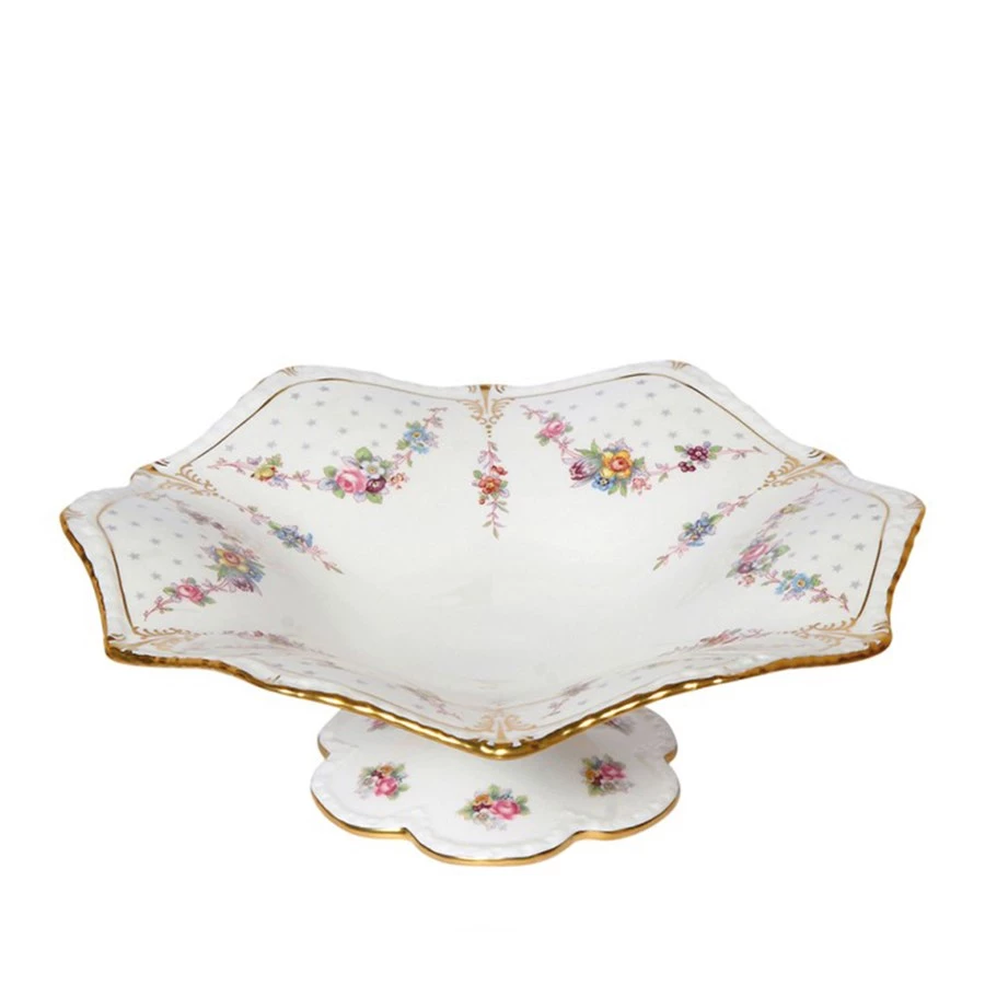 A beautifully intricate centre piece to any setting, the Royal Antoinette Comport 1821 is perfect for displaying fruit, pastries, and more. For a vintage style, Royal Crown Derby’s regal Royal Antoinette collection combines timeless elegance with a quintessentially English design that has graced dining for centuries. Applied to an intricate royal shape to add drama and hand finished in gleaming 22 karat gold.