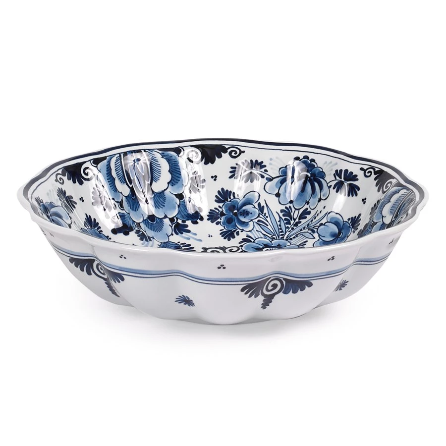 Classic blue and white color palettes with flower and leaf motifs showcases the skill of the Royal Delf master painter, executing clean lines against the gently fluted shape of the bowl. Entirely handpainted in Holland in the same workshop in production since the 17th century. Exclusively at Scully & Scully.