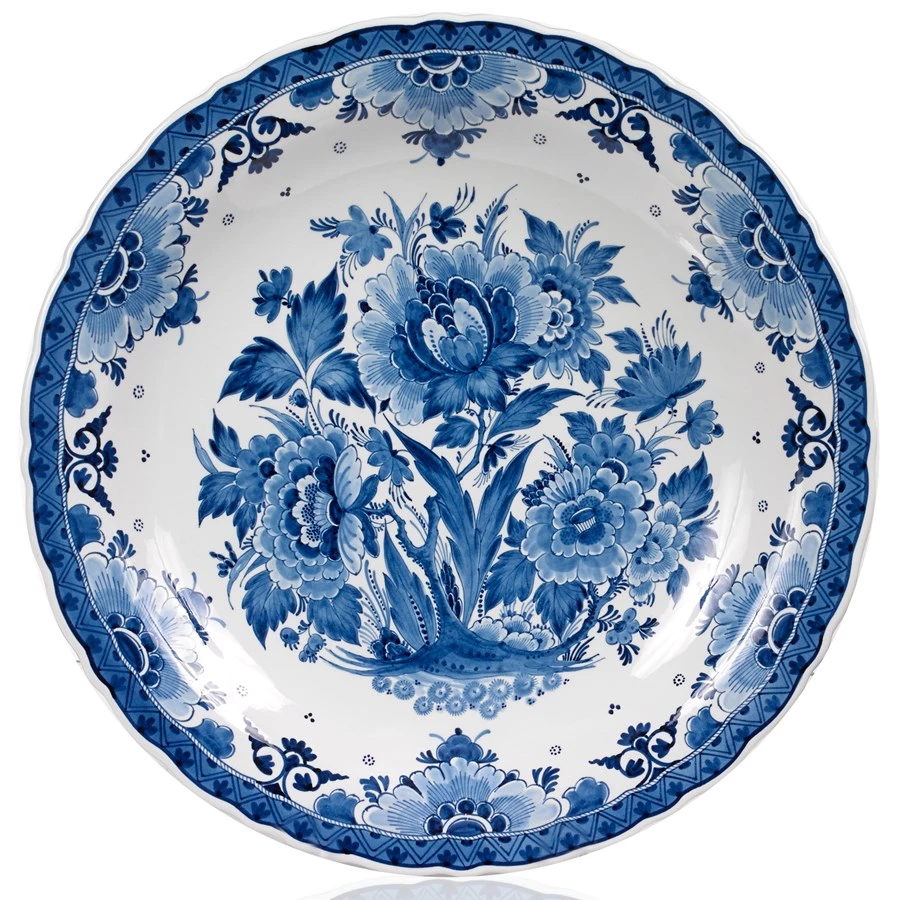 Classic blue and white color palettes with flower and leaf motifs. Entirely handpainted in Holland in the same workshop in production since the 17th century. Exclusively at Scully & Scully.