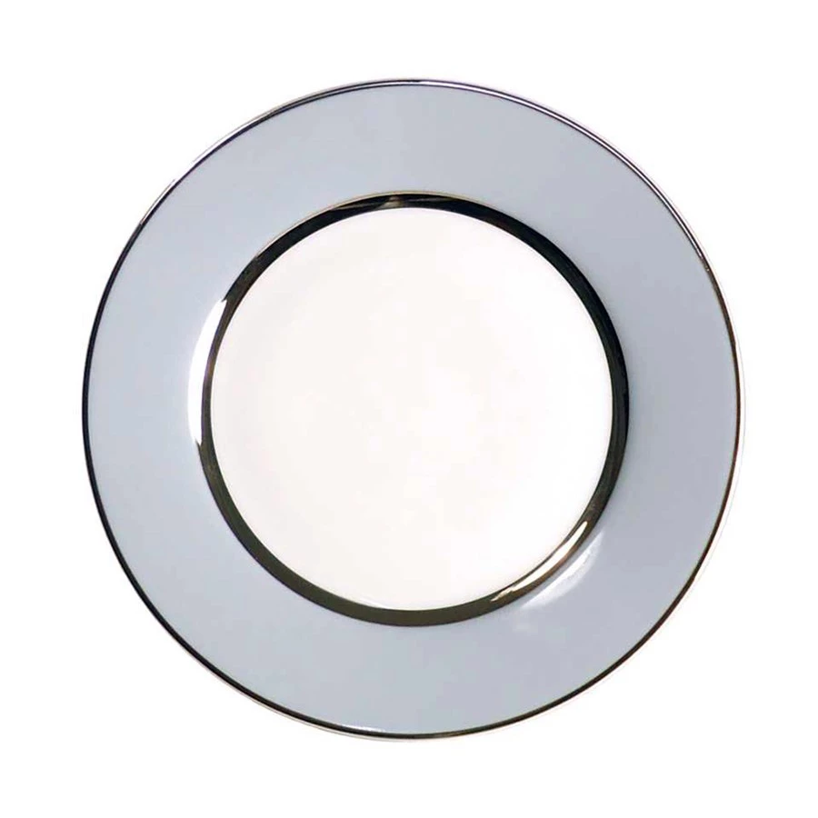 The Recamier shape is given a contemporary treatment in MAK, with effortlessly chic grey bands over traditional white Limoges porcelain. Each piece is enhanced by handpainted bands of stunning platinum. Handmade in France since 1797.