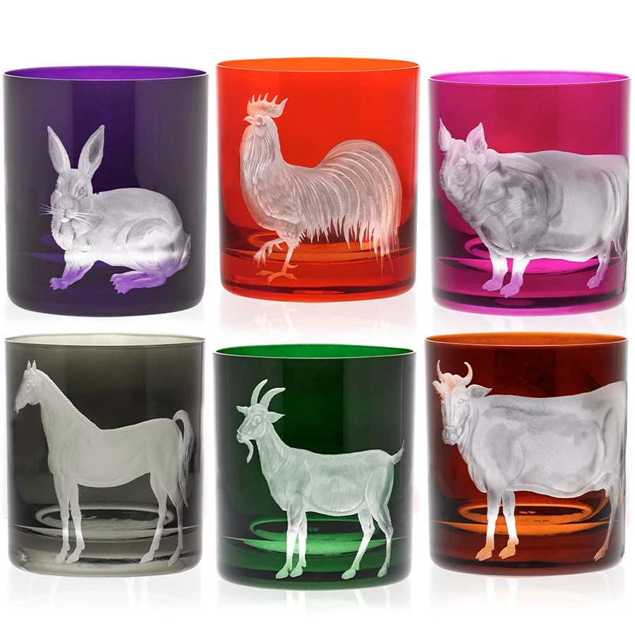 | Style | Artel Barnyard Double Old Fashioned, Burnt Orange Rooster, Artel Barnyard Double Old Fashioned, Purple Rabbit, Artel Barnyard Double Old Fashioned, Smoke Horse, Artel Barnyard Double Old Fashioned, Mahogany Cow, Artel Barnyard Double Old Fashioned, Fuchsia Pig, Artel Barnyard Double Old Fashioned, British Racer Green Goat, Artel Barnyard Double Old Fashioned, Set of 6 |