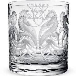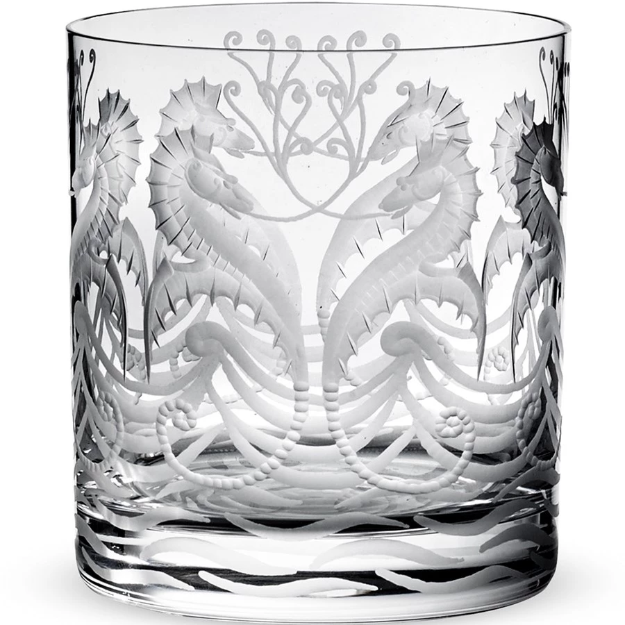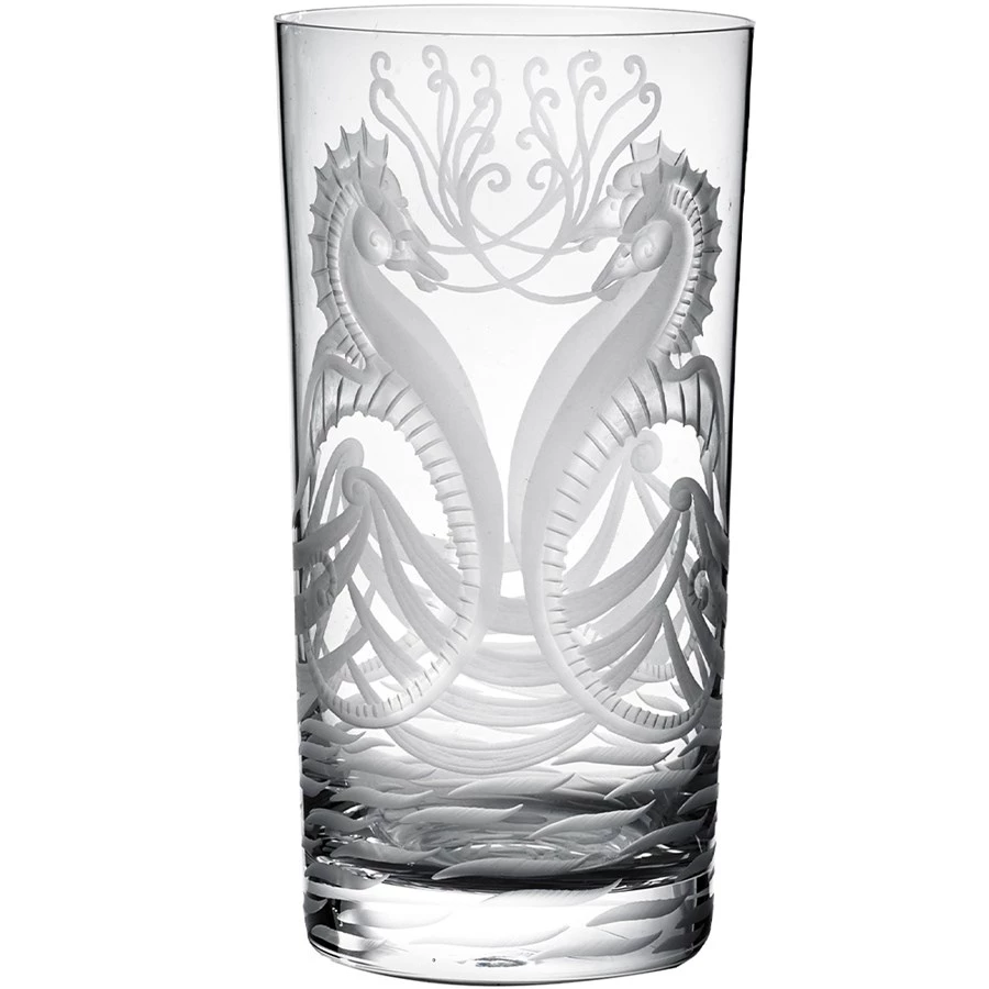 Elegant yet fun, Poseidon is inspired by the textile patterns of English designer Charles Francis Annesley Voysey, resulting in a stately procession of handsome seahorses gracing the sides of crystal with this motif from Artel. Handcrafted of special lead-free crystal from the Czech Republic, mouthblown and hand-engraved with diamond and stone wheels.