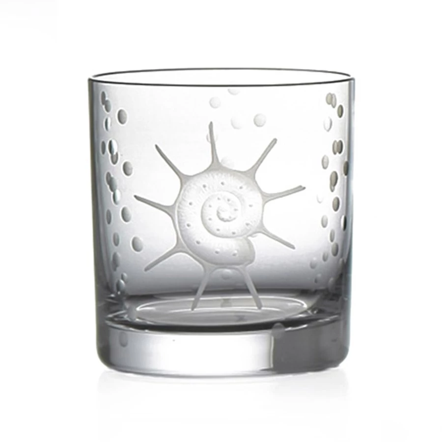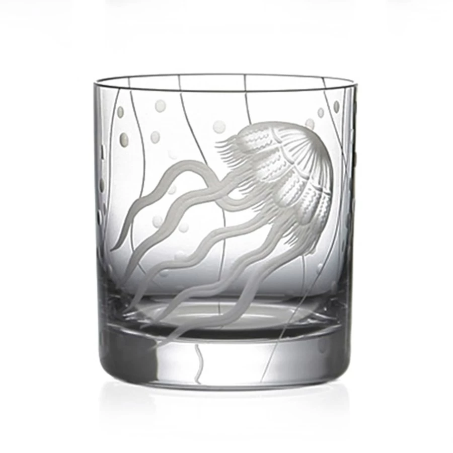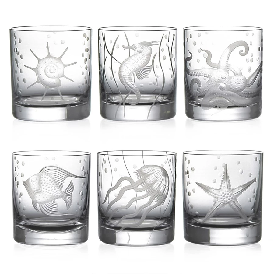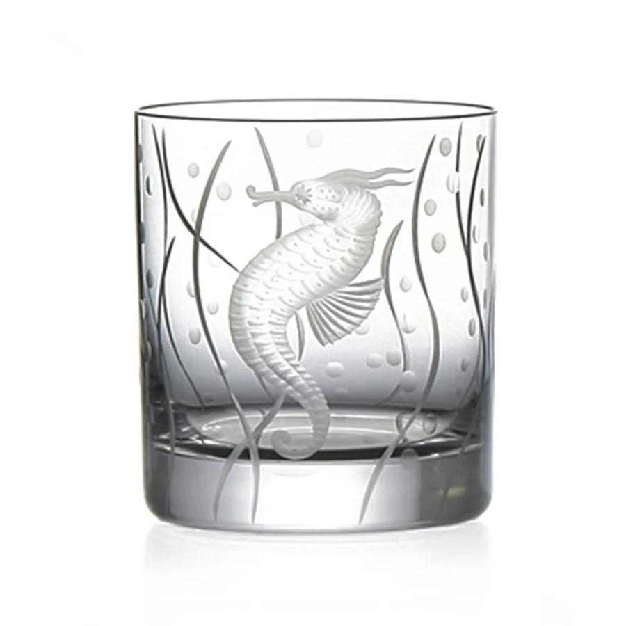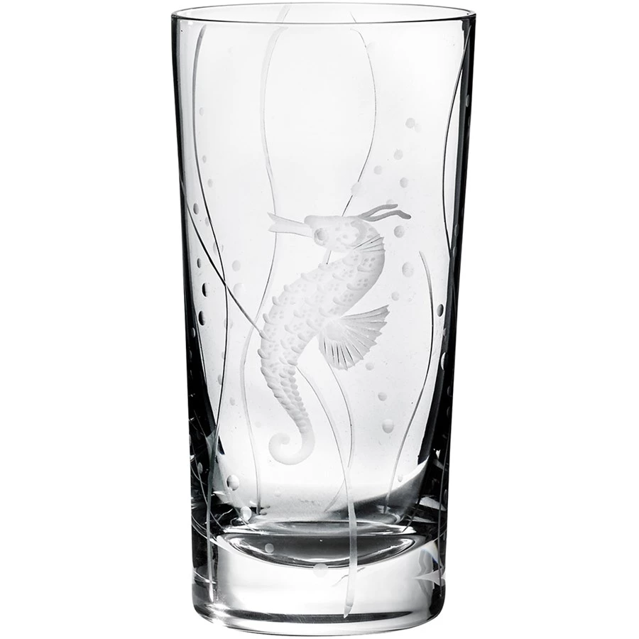 This energetic pattern from Artel features a seashell, fish, jellyfish, starfish, octopus and sea horse in fabulously engraved crystal. It is a special lead-free crystal from the Czech Republic, mouth-blown and hand-engraved with diamond and stone wheels.