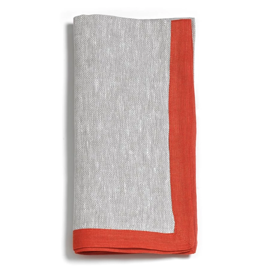 These elegant off-white basket-woven linen Cabana napkins are styled with brightly colored borders. Made of 100% linen. Machine wash.