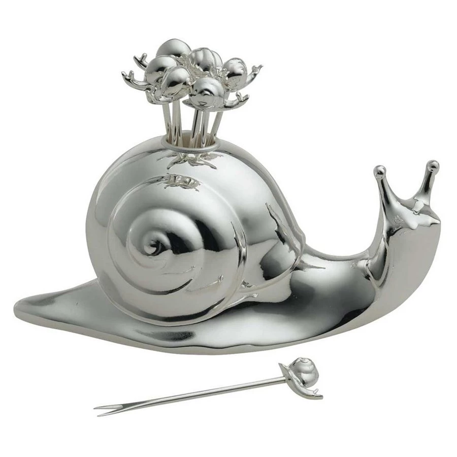 Snail measures 5″ w x 2¼” d x 2¼” h. Pick measures 2⅝” long.