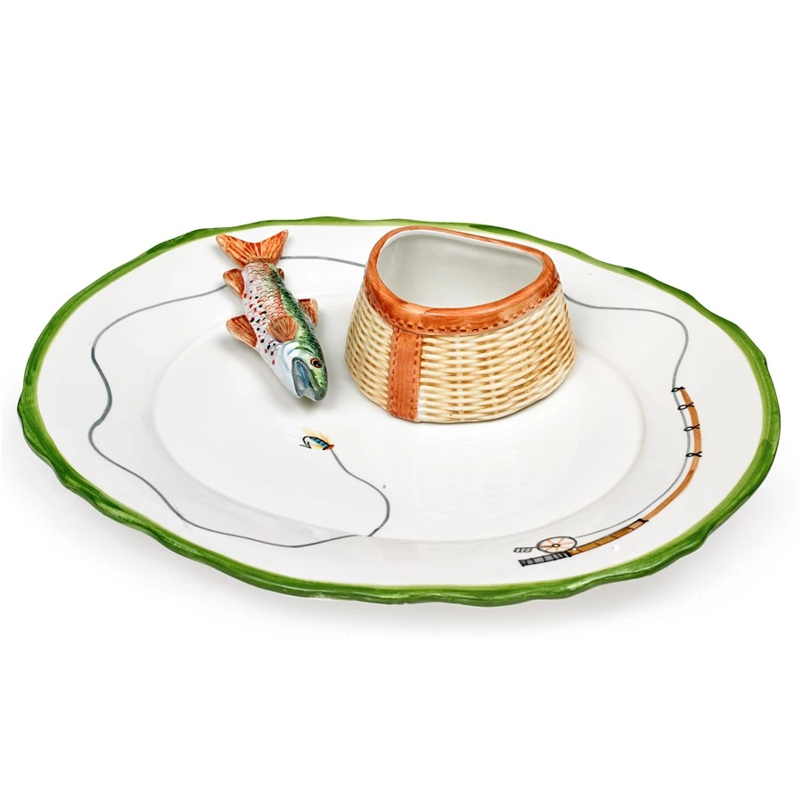 Fresh and easy entertaining is right at hand with our charming ceramic server, handmade and handpainted by master artisans. The fish and basket are affixed to the platter. Handmade in Italy.