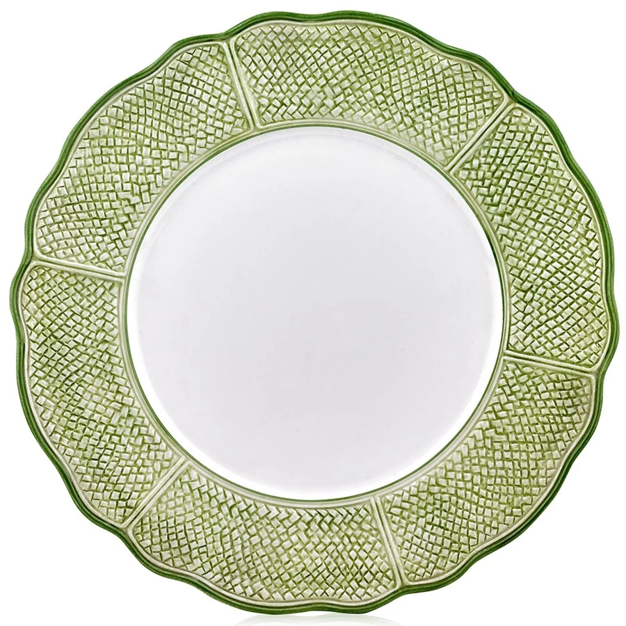 Bring a pop of color to your table with handpainted Green & White Charger Plates. The green edges bring the fresh verdant greenery of the Italian countryside to mind, presented in a basket weave pattern. Handmade in Italy. Exclusively at Scully & Scully.