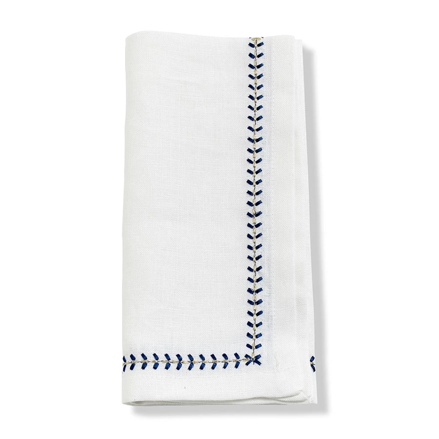 A more classic linen napkin would be hard to come by. The metallic and cobalt design is perfect for the breakfast table to start your day off right. Machine wash warm with like colors, machine dry low, remove promptly, steam iron while damp on the reverse side, do not bleach.
