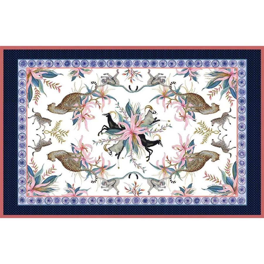 Ornate exhibitions of the jungle adorn our tablecloth designs depicting cheerful and spirited scenes paying testimony to the abundance of African nature. Handmade and individually cut and sewn. Material is 100% Cotton.