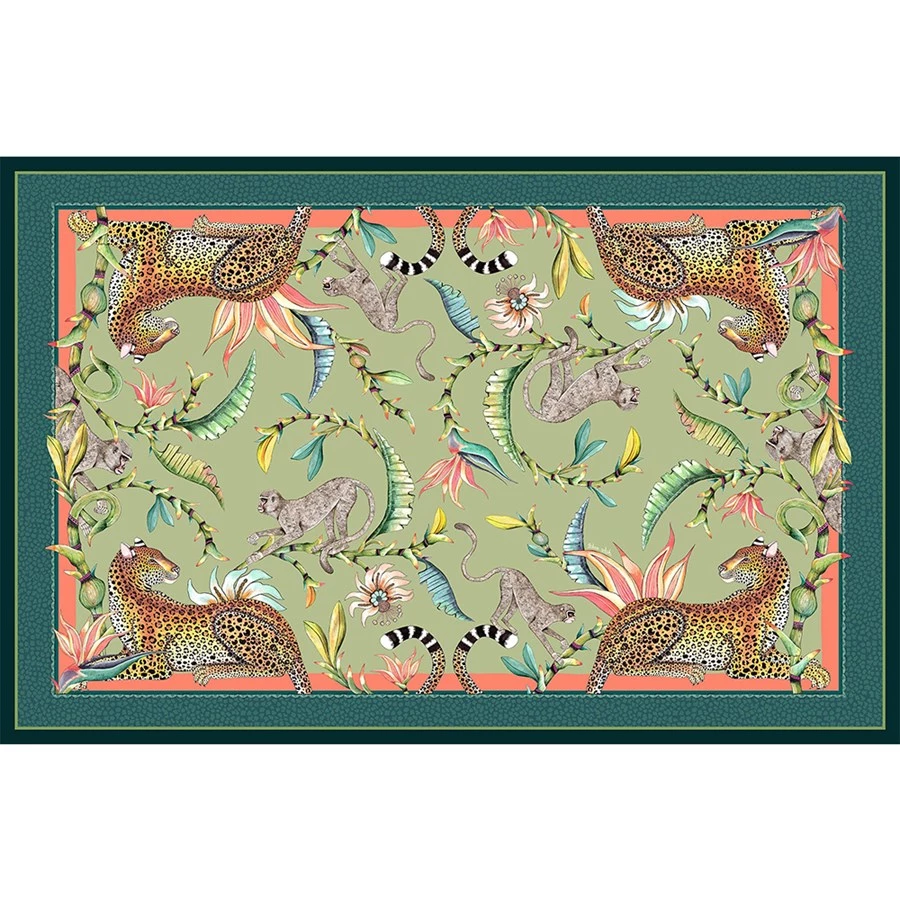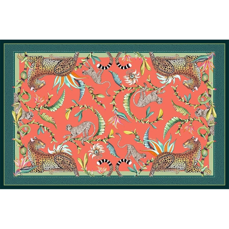 Ornate exhibitions of the jungle adorn our tablecloth designs depicting cheerful and spirited scenes paying testimony to the abundance of African nature. Design includes monkeys, leopards, strelitzia or bird of paradise, and lush passion flowers, all found in the Zambezi River basin. Handmade and individually cut and sewn. Material is 100% Cotton.