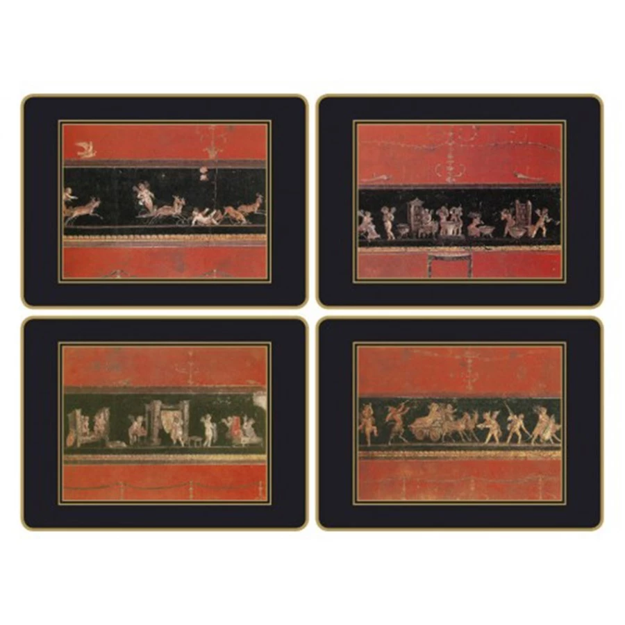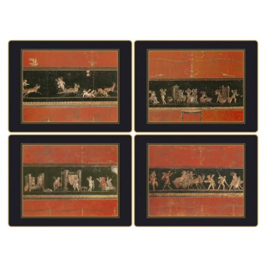 Each wooden mat and coaster is handmade with heat resistant lacquer and features a hand applied art print of the fabled Italian city of Pompeii. The backing is felted to protect any tabletop while eliminating slip. Made in England. Exclusively at Scully & Scully.