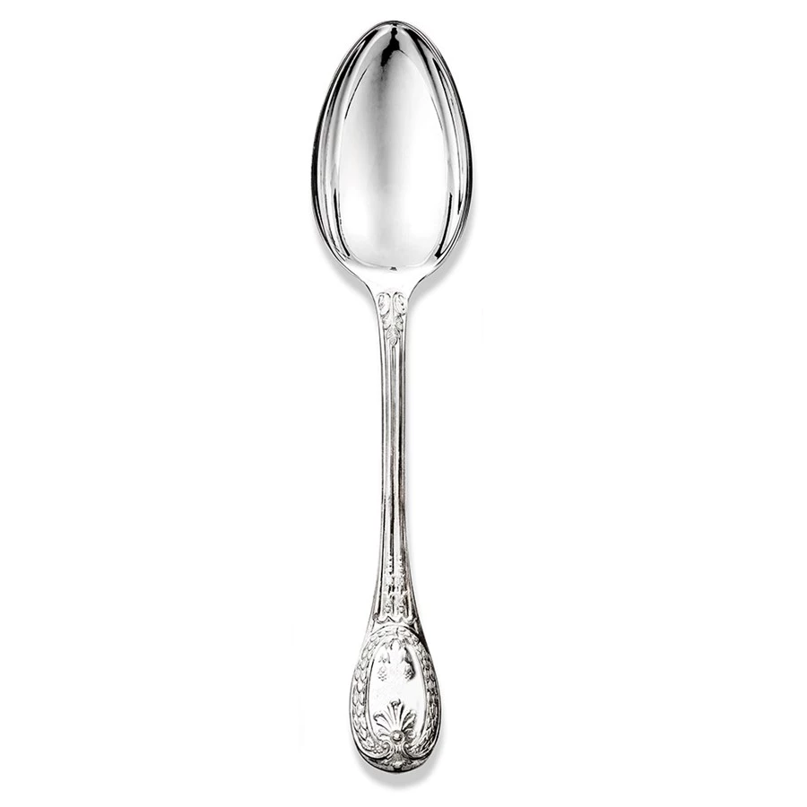 Created in 1781 during the reign of Louis XVI, the Odiot Sterling Louveciennes design is decorated with a garland of bay leaves framing a shell motif.