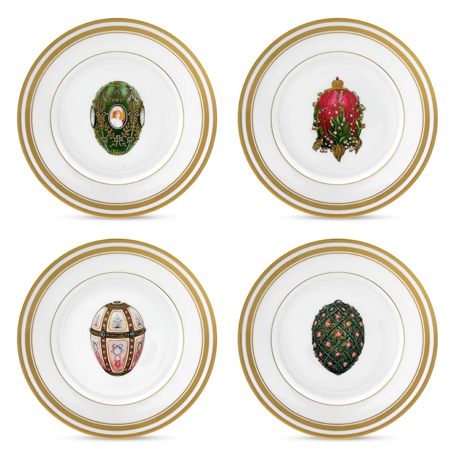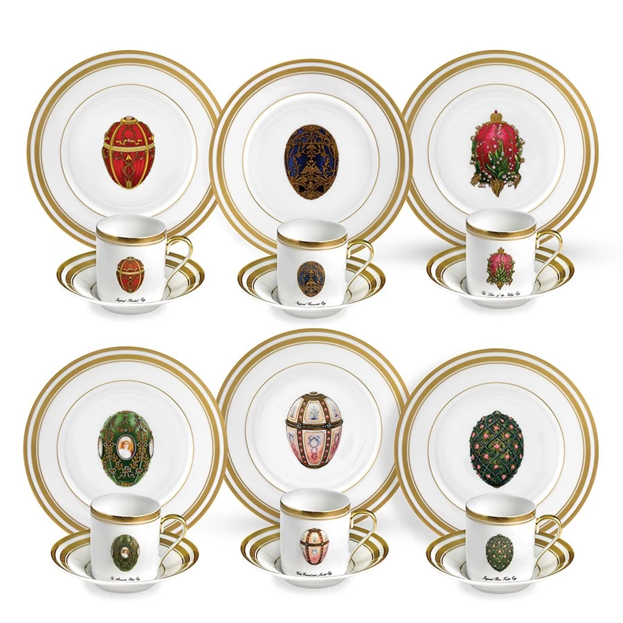 With the rims adorned with 24k gold, these exquisite plates and cups are made of the finest Limoges porcelain. On each piece is a depiction of an Imperial Egg. Handmade in France since 1797. Exclusively at Scully & Scully.