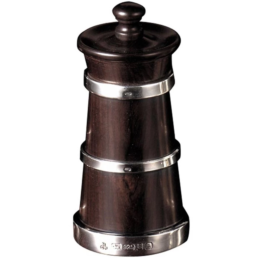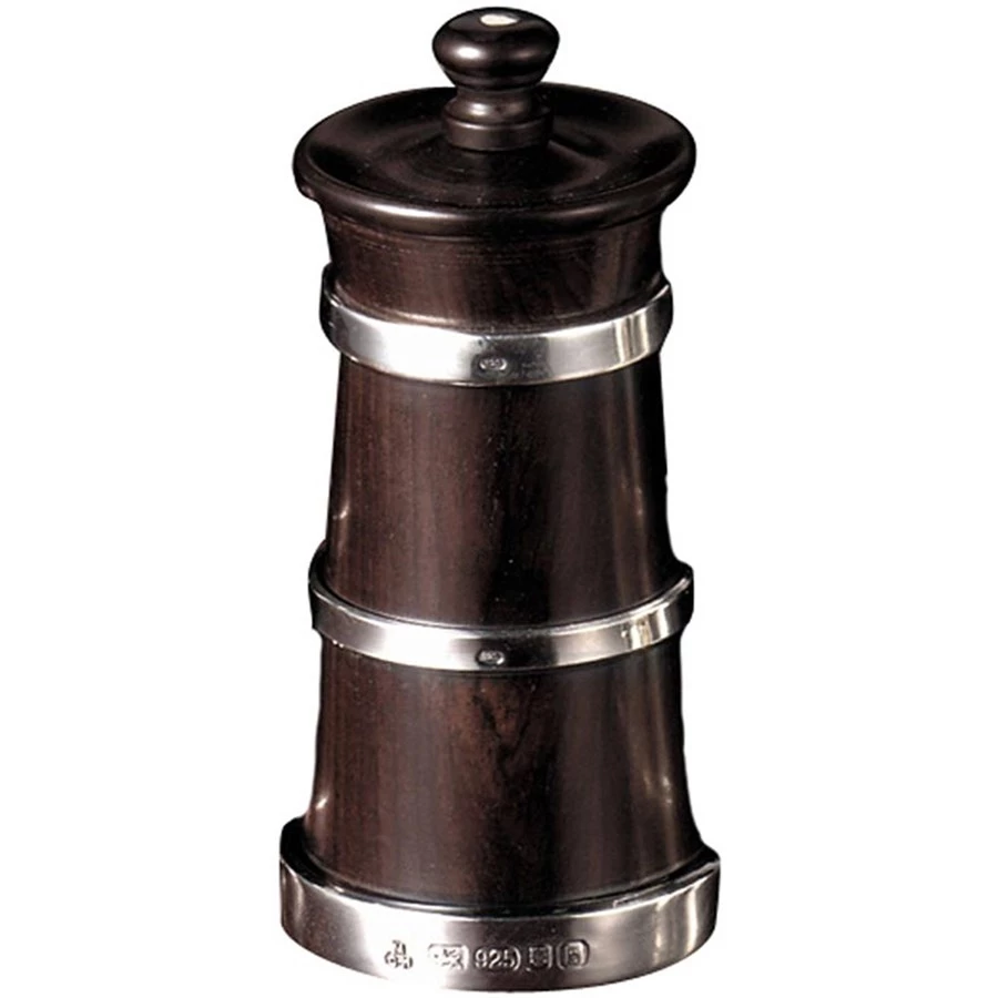 Handcrafted in England, these elegant churn-style salt and pepper mills are a beautiful addition to any table and make a thoughtful gift. The ebony body of each mill is accented with hallmarked sterling silver bands. Exclusively at Scully & Scully. Sold individually.