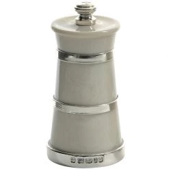 Handcrafted in England, these elegant churn-style salt and pepper mills are a beautiful addition to any table and make a thoughtful gift. The ivorine body of each mill is accented with hallmarked sterling silver bands. Exclusively at Scully & Scully. Sold individually.