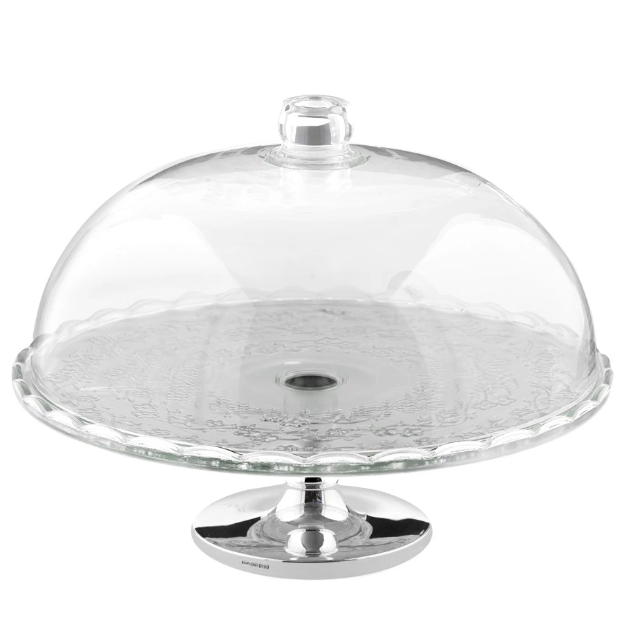 Featuring beautiful floral ornamentation, this Sterling Silver Cake Stand With Crystallite lid is a wonderful tablescape centerpiece, the perfect addition to any dessert set.Â