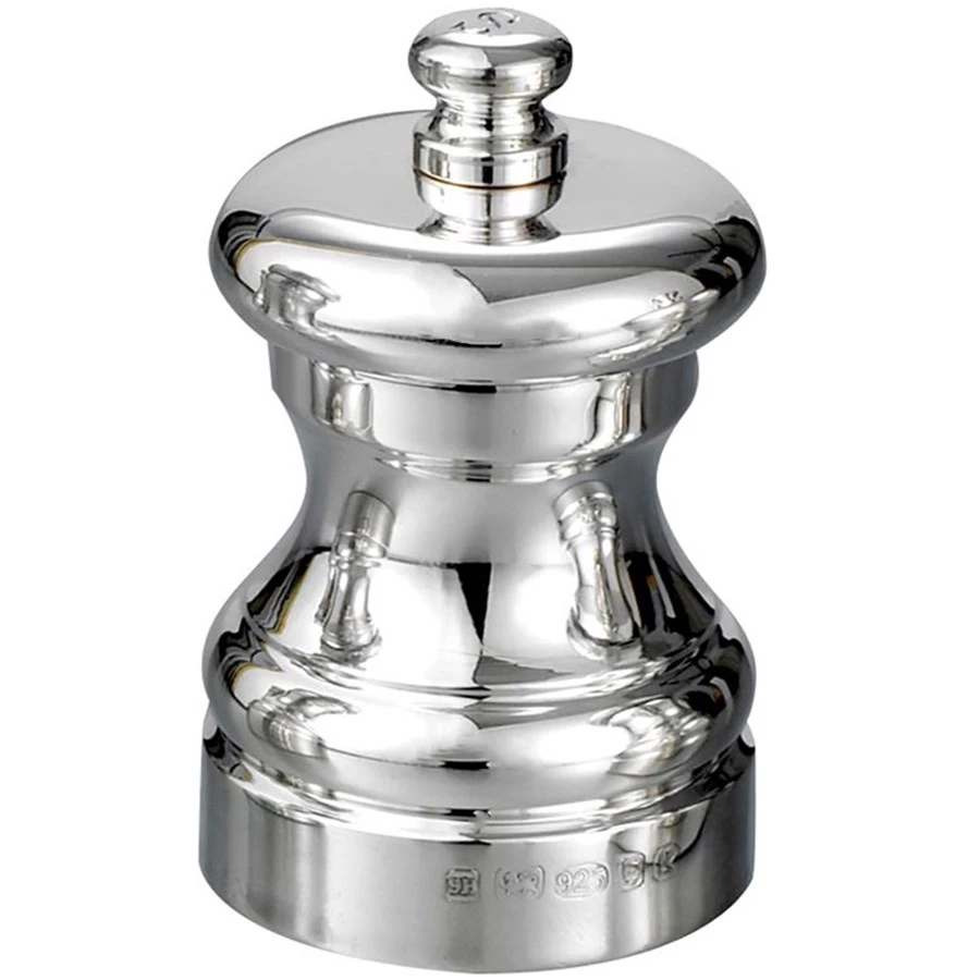 Classic sterling silver salt & pepper mills are handcrafted in London. Hallmarked on base and marked with an “S” or “P” on the knob to easily differentiate between salt and pepper. Handmade in England. Exclusively at Scully & Scully. Sold individually.