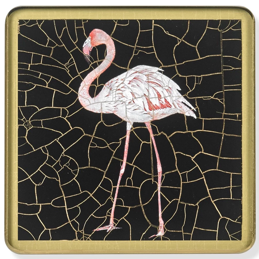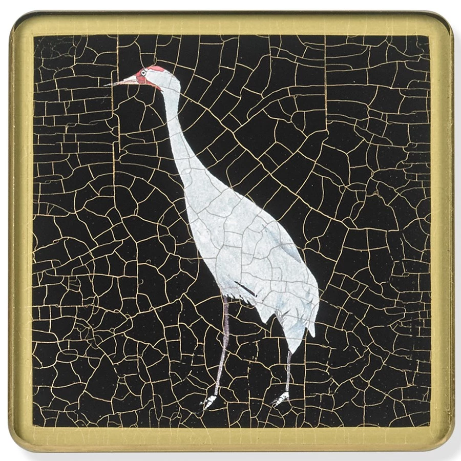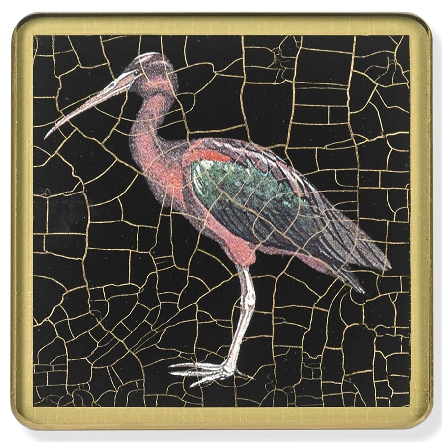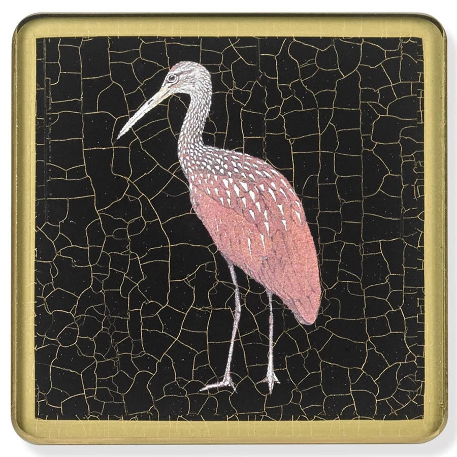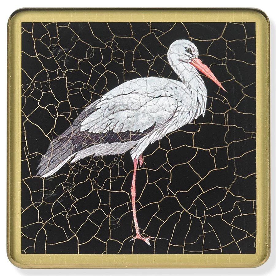 The traditional art of decoupage on square coasters with protective felt backing, featuring elegant water birds. The glass topped coasters can even double as trivets and hold warm plates. Handmade in England. Exclusively at Scully & Scully.